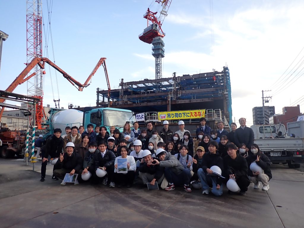 現在、建替えが進行中の山口市新本庁舎の建設現場において、本学科の学生向けの第2回見学会が開催され、学部3年生と学部1年生、合わせて38名が参加しました。